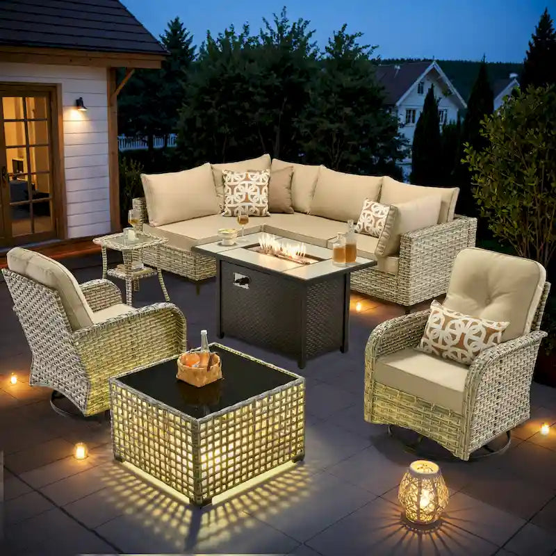 ENSEMBLE DE CANAPÉ D'EXTÉRIEUR 7 PIÈCES EN ROTIN AVEC TABLE FOYER